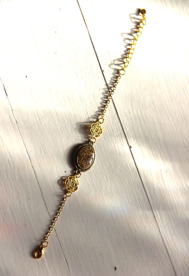 Ajustables. Chaînes inoxydables. Perles naturelles, verres ou cabochon résiné pailleté.