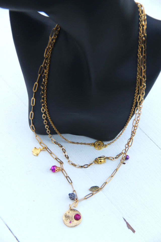 Chaînes inoxydables d'environ 60, 50 et 45 cm. Fermeture mousqueton